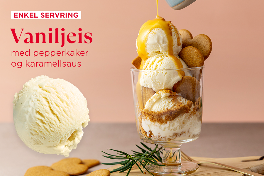 Krokanis med multer, vaniljeis med rød saus, sjokoladeis til pepperkaker – is passer perfekt sammen med klassikere gjestene allerede forventer på julemenyen. - Gir variasjon og friskhet