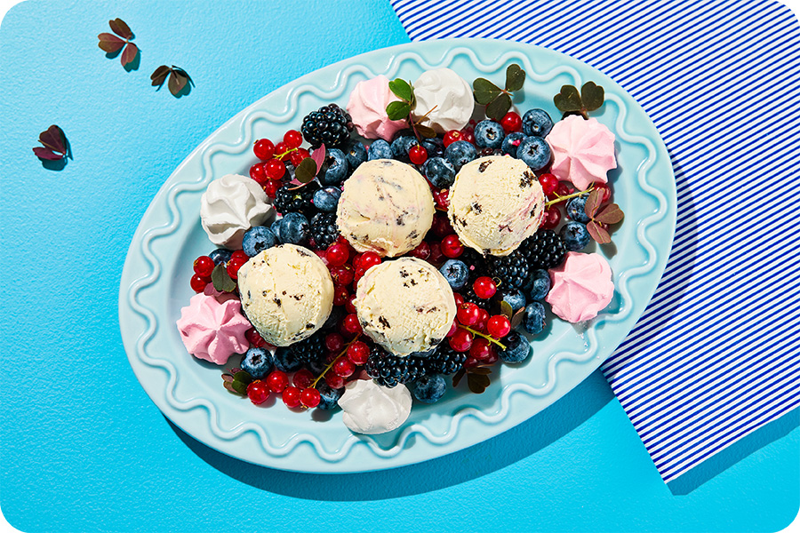 Eton mess er en klassiker, elsket av både store og små! Med bare tre komponenter har du en lekker dessert som kan tilpasses både sesong, størrelse og produkt. Vi anbefaler vår Skogsbær & Brownies Vegan 5L, sammen med friske bær og pikekyss.